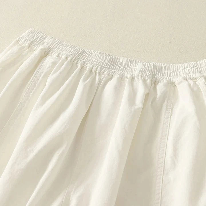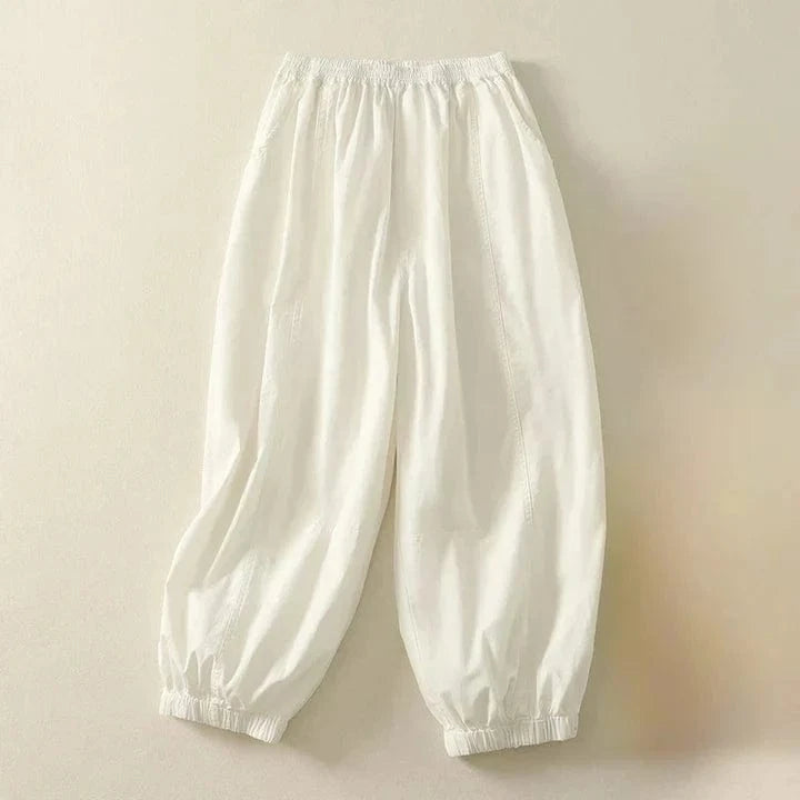 Spun from breathable linen, these cuffed harem pants balance ease with structure. A gathered waist and tapered leg shape the silhouette—designed for quiet days and unhurried walks.