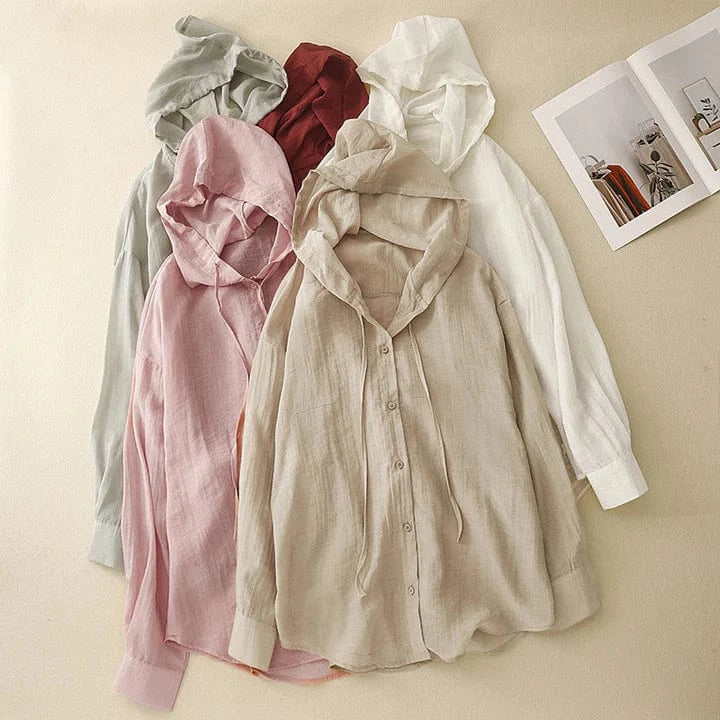 A linen hoodie, reimagined with grace. The texture is light, almost gauze-like, with a subtle crinkle that catches the light and shifts with your every move. The silhouette flows long and loose, while the hood drapes softly—more sculptural than sporty.