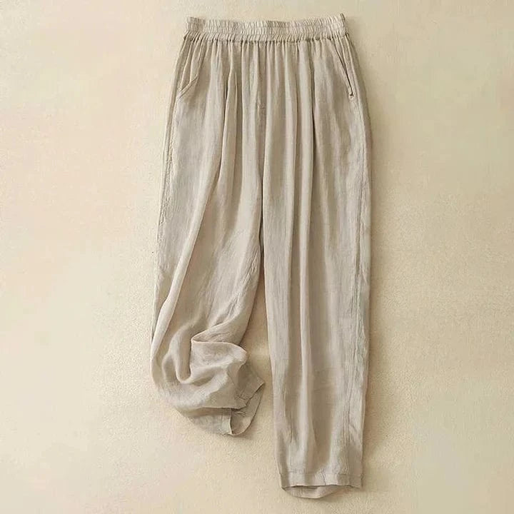 Whisper-light and cloud-soft, these Gossamer Linen pants are made for slow mornings and barefoot wanderings. Their flowing silhouette carries a quiet grace, grounded in ease.