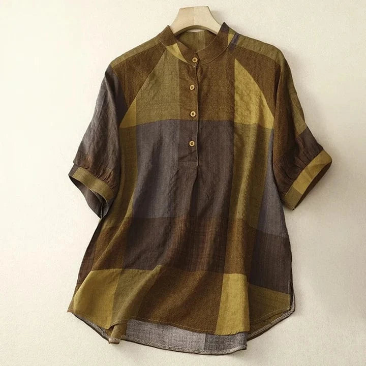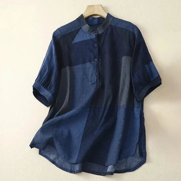 Soft linen meets sharp detailing in this collared beauty. The tonal patchwork offers depth without fuss, and a half placket ensures just the right hint of tailoring. Smart enough for meetings, light enough for midsummer heatwaves.