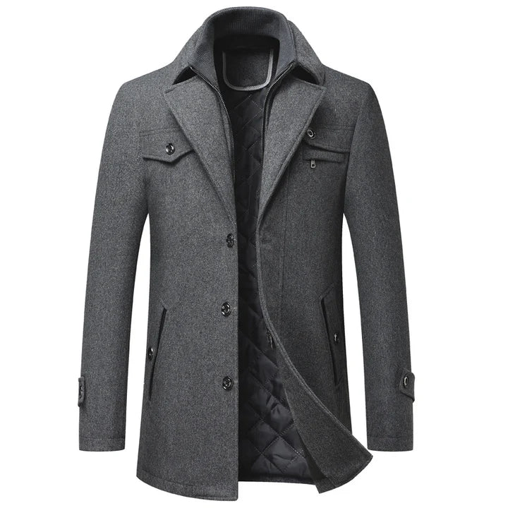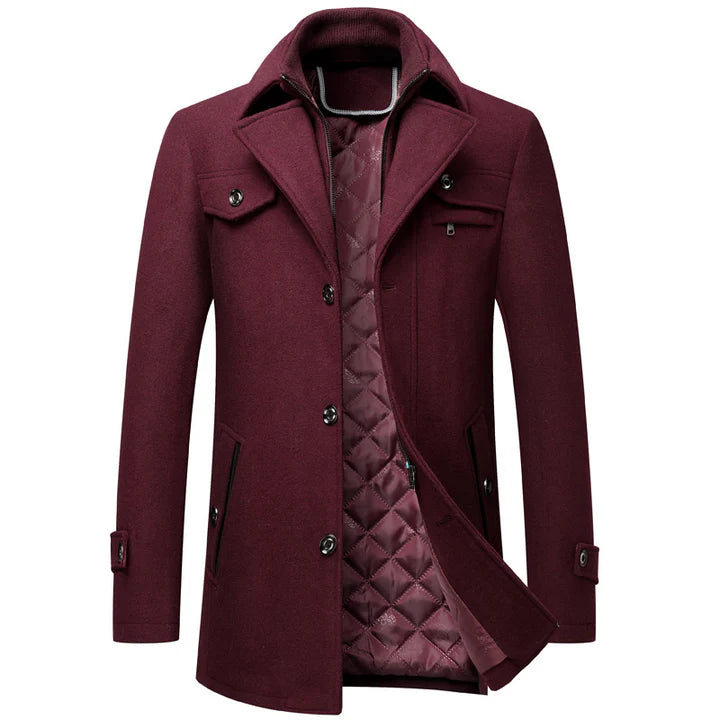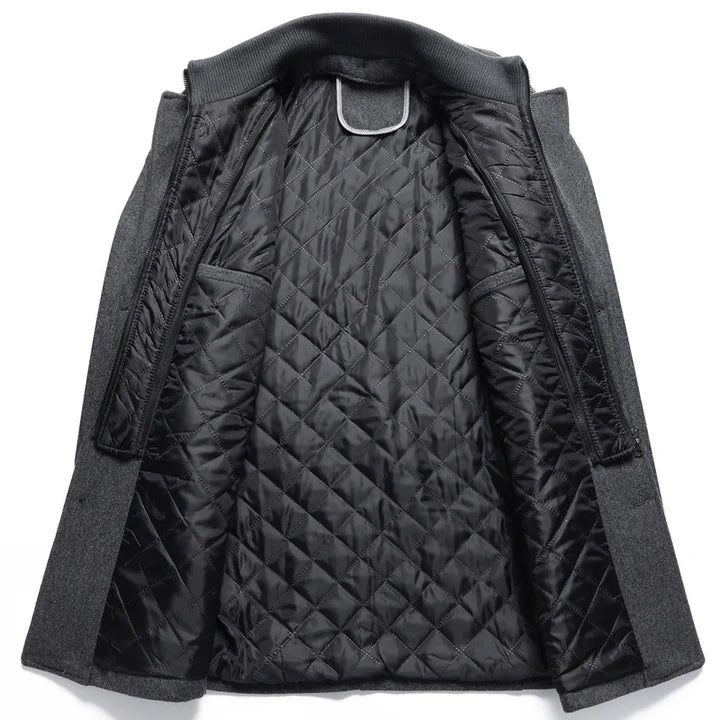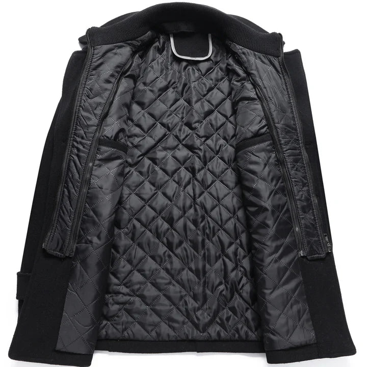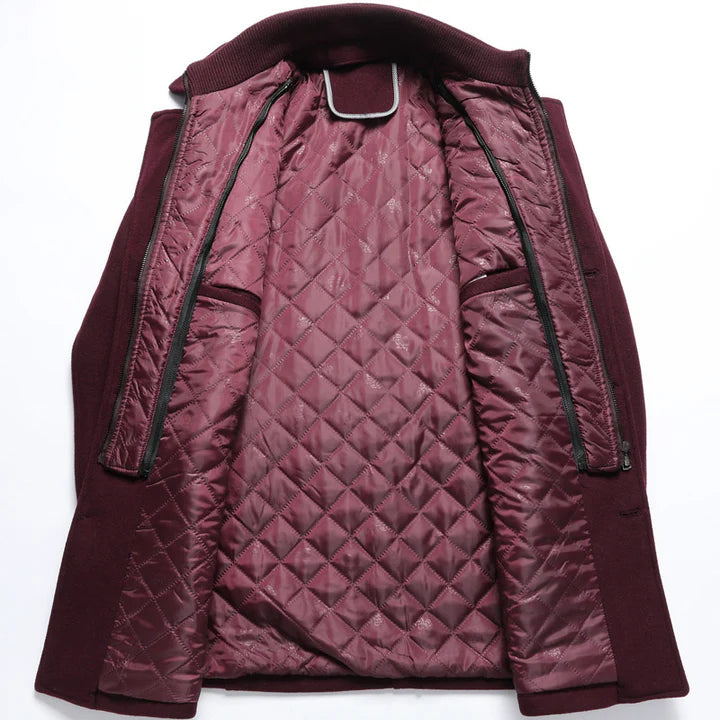 A cold-weather essential, this overcoat balances warmth and structure. A tailored fit, reinforced collar, and smooth lining bring comfort with an edge.