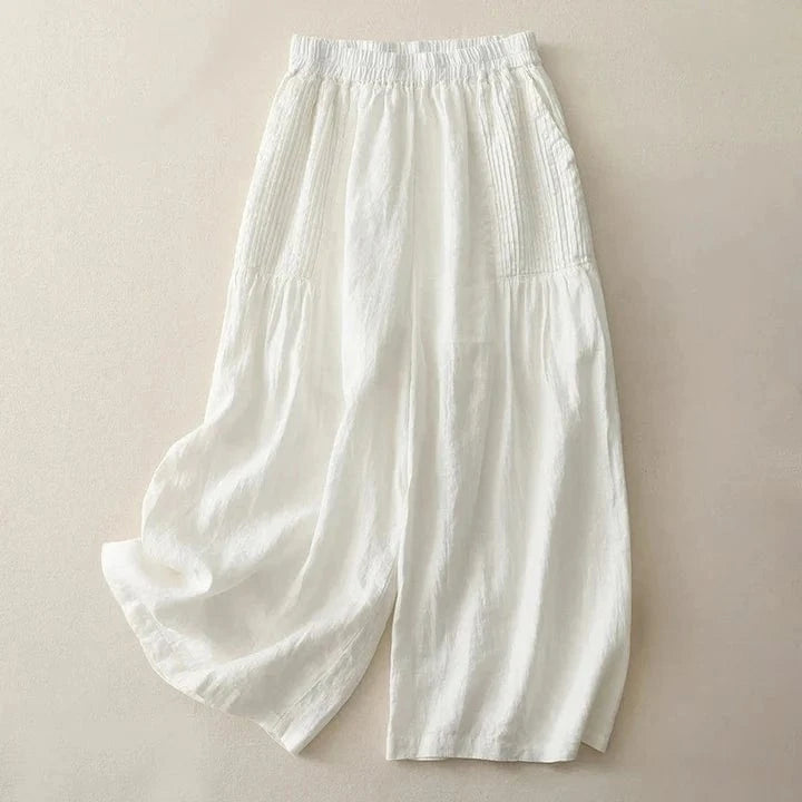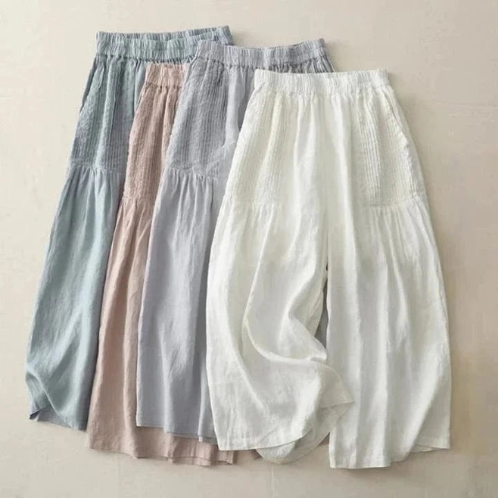 Crafted in gossamer linen, these pants blend vintage charm with contemporary ease. Pintuck details and soft gathers evoke artful femininity. A poetic piece for everyday wanderings.