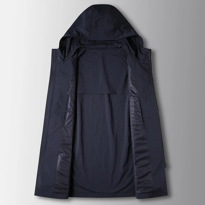A quiet shield against breeze and bustle, this hooded layer flows with stretch and structure. Designed for crisp mornings and open-air evenings—light on form, firm in style.