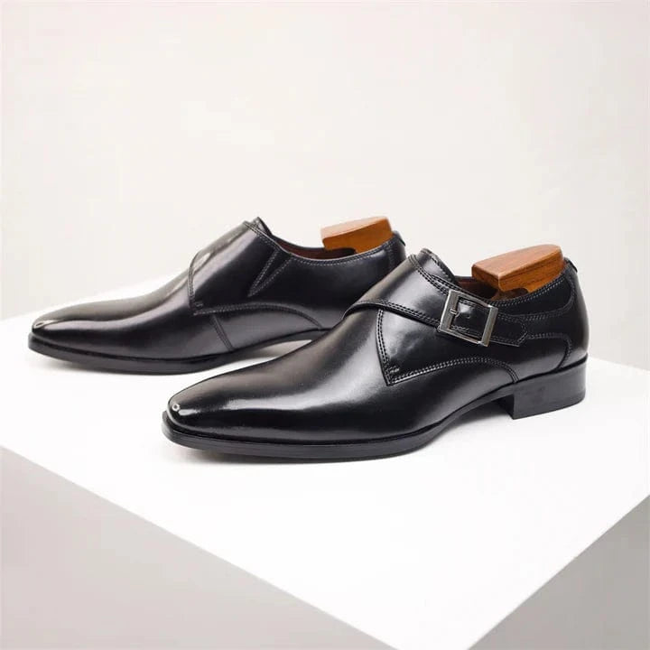 Crafted from premium cow leather, the Ben William dress shoes are adorned with a titanium buckle and fine stitching. The cushioned interior provides extraordinary comfort and a delightful walking experience.