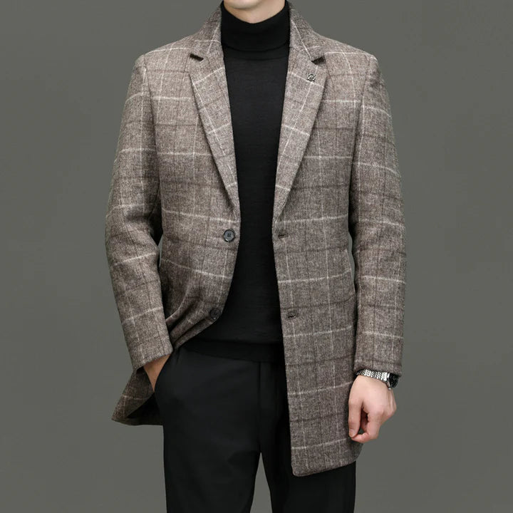Heavyweight wool craftsmanship transforms this overcoat into a barrier against the cold, setting a new standard in cold-weather attire.