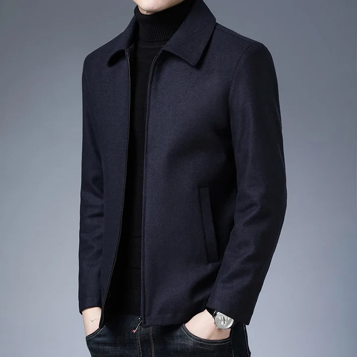 Woven from heavyweight wool blend, this jacket is a masterclass in restraint—uncompromising in warmth, deliberate in design. A sharp silhouette meets a supple drape, ensuring an effortless command of any setting.