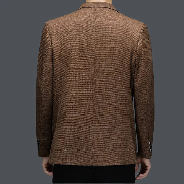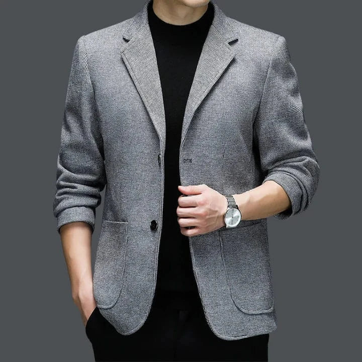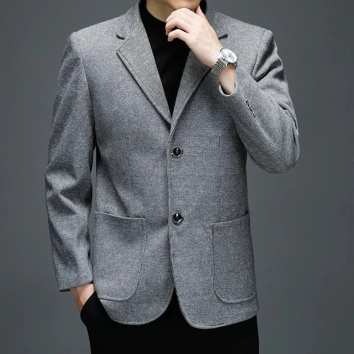 A masterstroke in wool tailoring, this blazer channels an understated boldness. The intricate weave plays with light and shadow, enhancing its rich texture, while the unstructured design ensures ease without compromise.