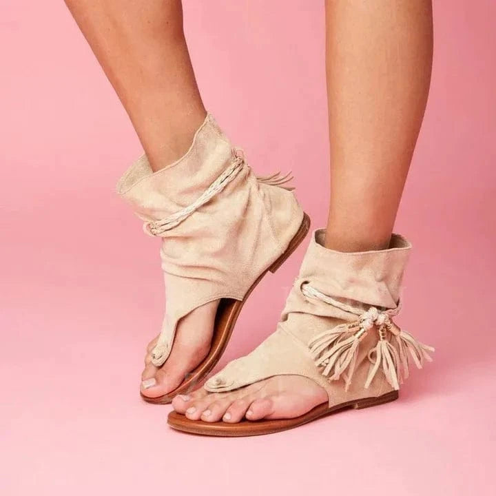 Get summer-ready with these quirky Women's Open Toe Sandals! Featuring a flat sole and tassel design, these boots are perfect for a day at the beach or hanging out with friends. Say goodbye to boring sandals.