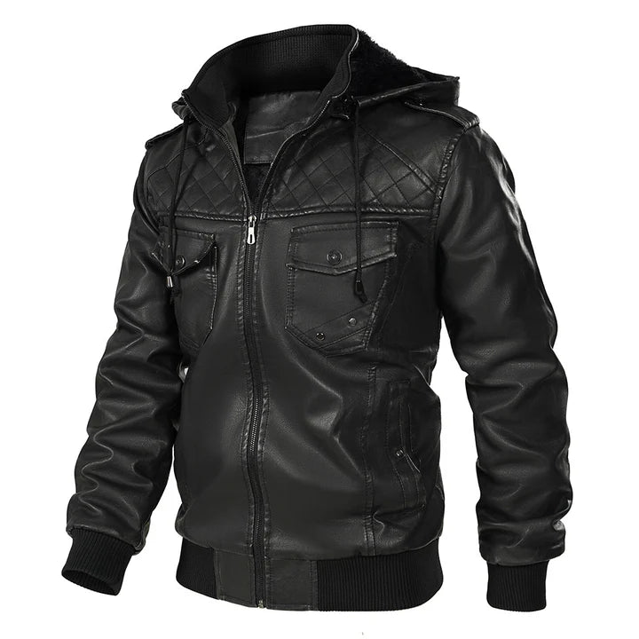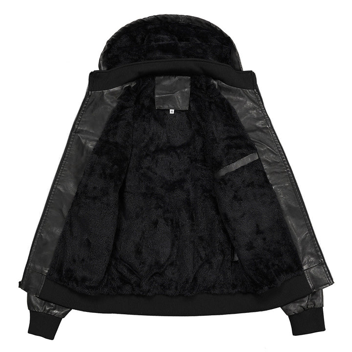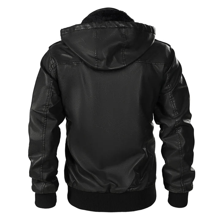 Crafted from premium leather and lined with a fleece interior, this jacket delivers exceptional warmth and comfort. Designed with a tailored fit, functional hood, and convenient pockets.