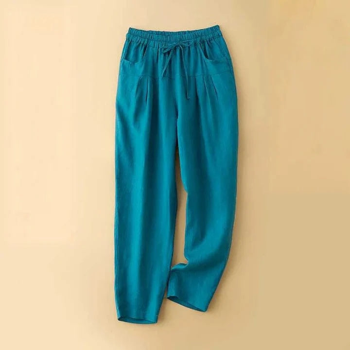 Defined by their understated luxury, these finely woven linen trousers present a clean, relaxed silhouette with an elasticated waistband, marrying comfort with an elevated, contemporary sensibility in a distinguished color.