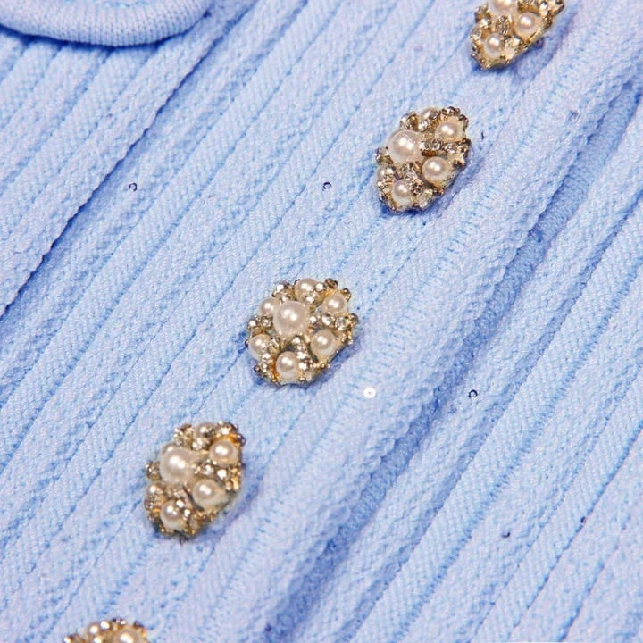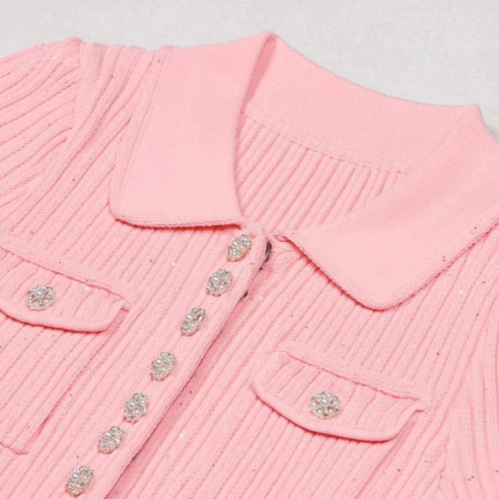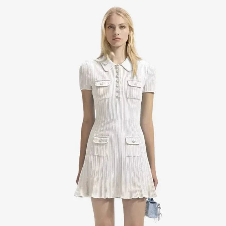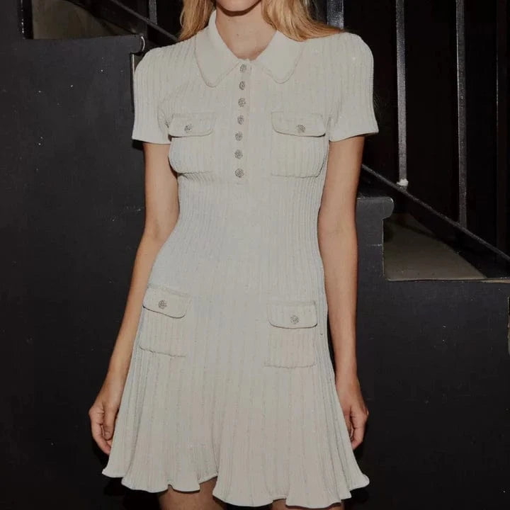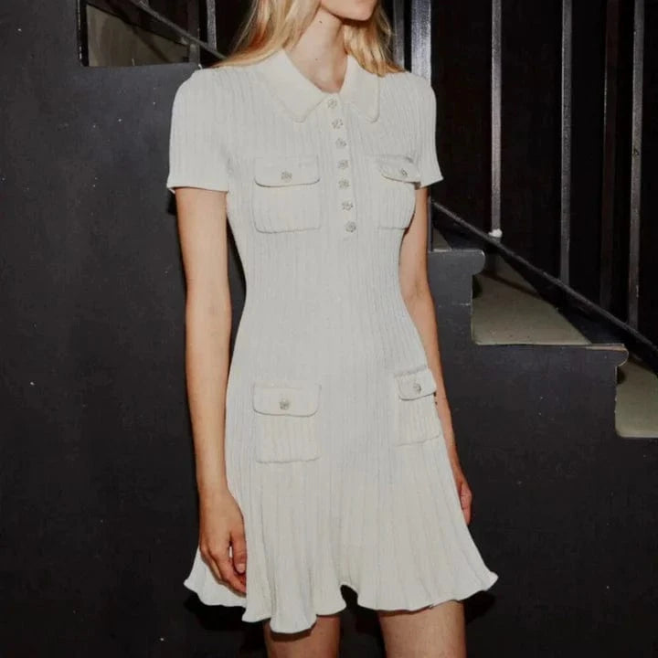 Crafted to accentuate the silhouette while staying effortless, this ribbed knit dress is elevated by glossy jewel buttons and softly structured pockets. A smart yet sensual essential for refined wardrobes. Material: 70% viscose, 30% cotton