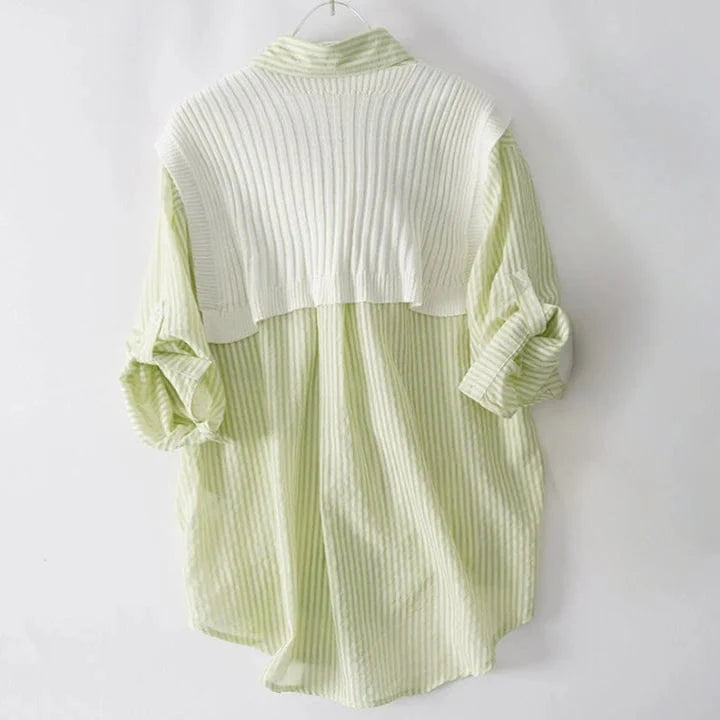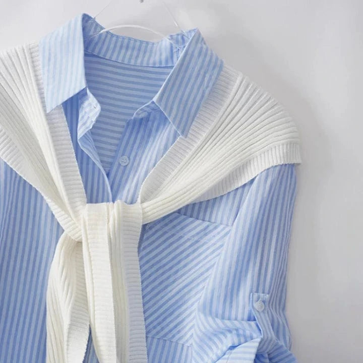 A study in lightness and line, this shirt balances classic tailoring with fluid motion. Soft stripes dance across the silhouette, while a relaxed drape adds a sense of calm precision. Designed for days that lean into quiet ease, elevated by subtle detail.