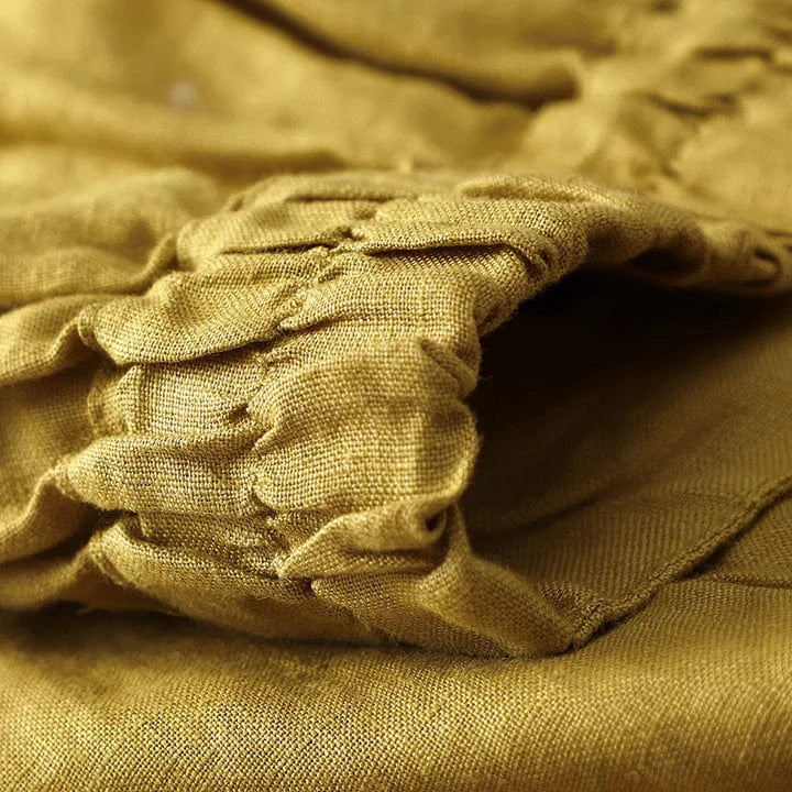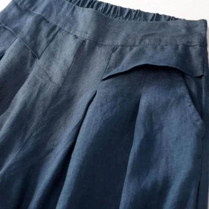 The quintessential piece for a curated wardrobe, these pants combine the breathable luxury of gossamer linen with a beautifully tailored front and a dramatic, flowing leg.