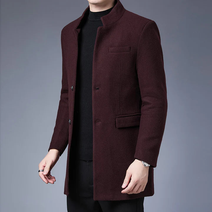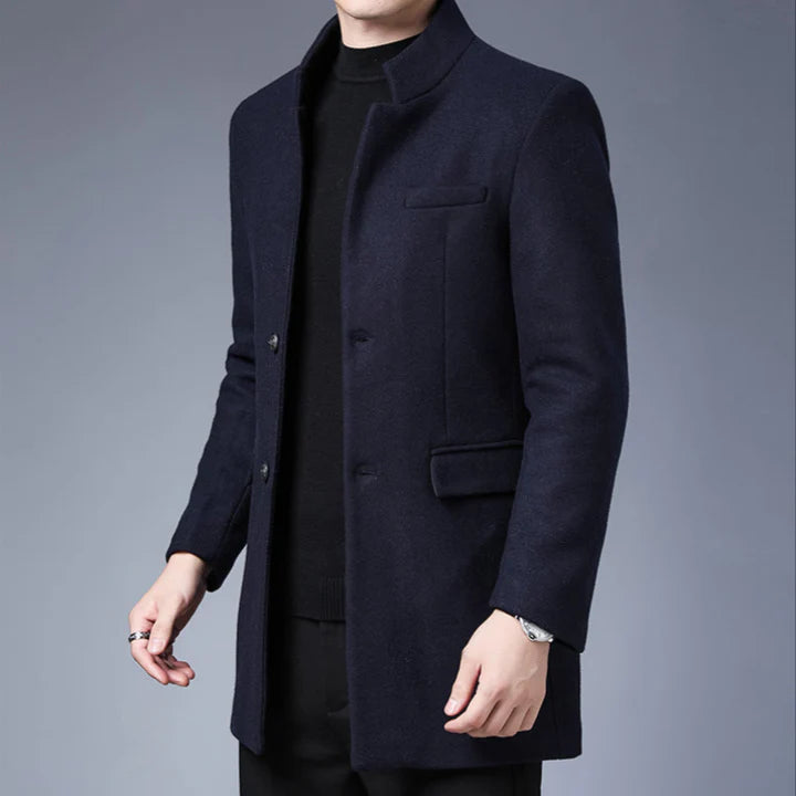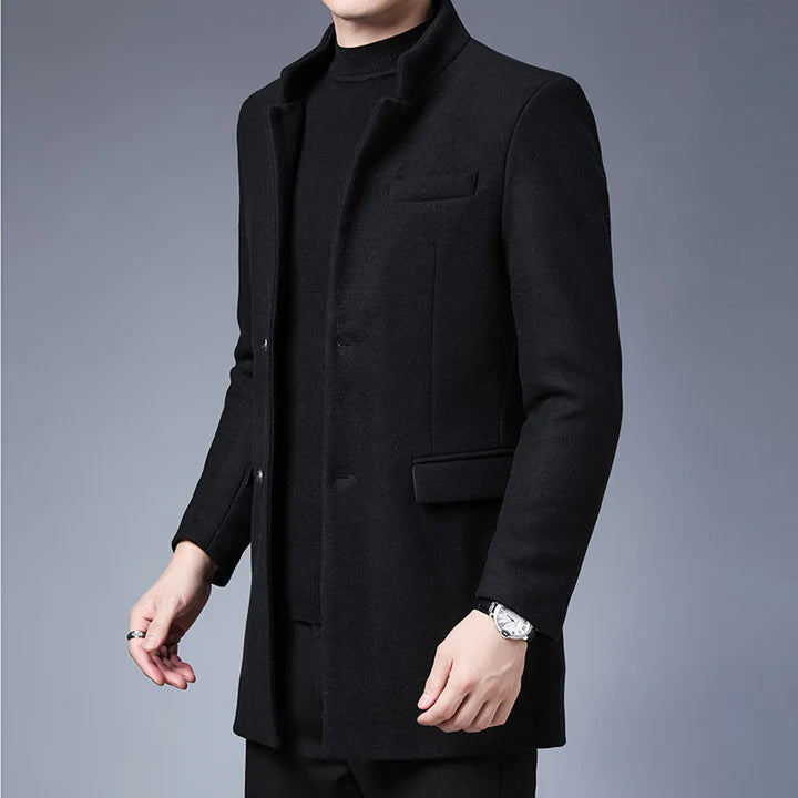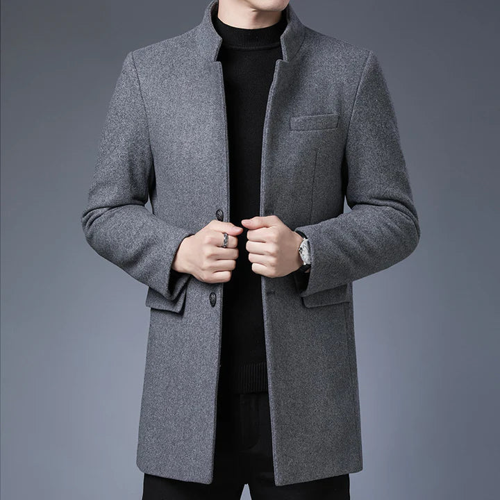 Crafted from premium cashmere wool, this sartorial overcoat serves as a reminder of how clothing should feel, delivering a high collar, deep pockets, and a warm interior lining—for days when class and warmth are a requirement.