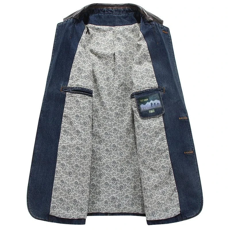 Crafted with durable denim and raw leather details, our Dalton jacket exudes urban grit with a designer twist. The leather accents on the collar and pockets give it that perfect vintage vibe. Finished with tough buttons for a secure, lasting fit.