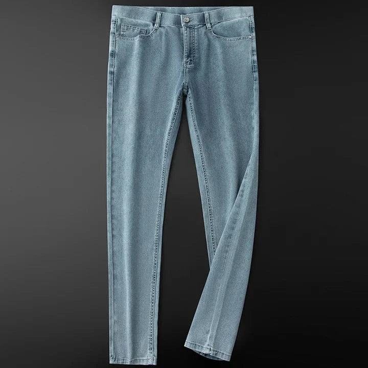 Washed for softness, these stretch jeans offer a slim fit with understated ease. Tailored in a muted slate tone, they balance structure and comfort—made for everyday movement and quiet confidence.