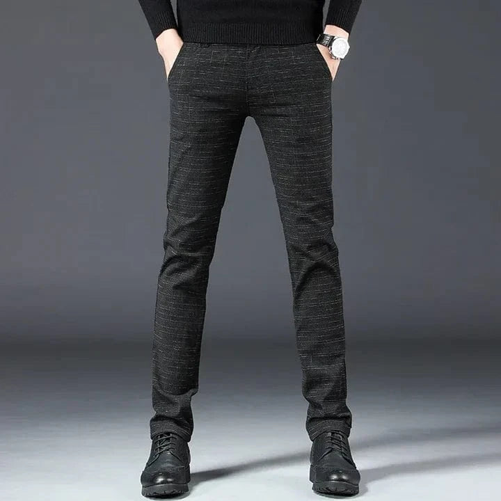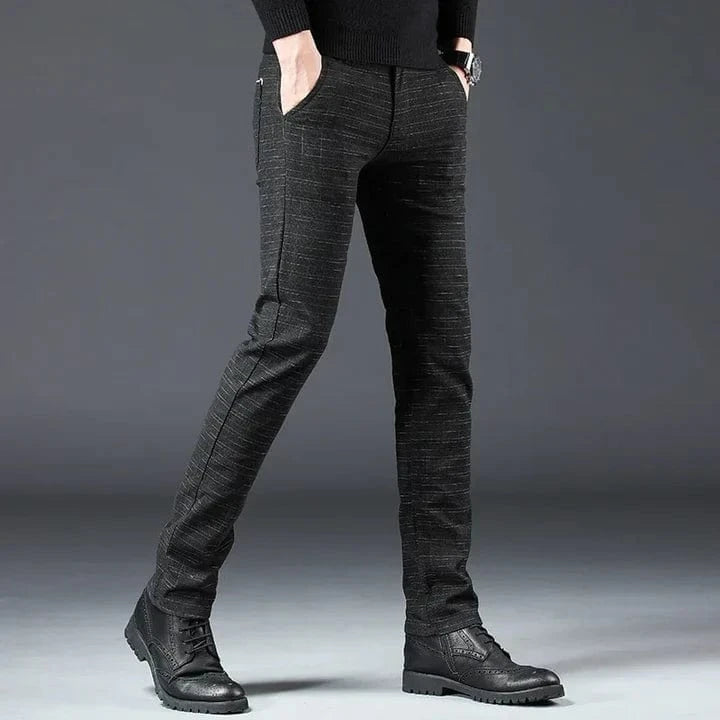 Made with a warm, heavy cotton blend, our Disco Slim Fit Pants deliver a sharp tailored fit complemented by discreet pinstripes, functional pockets, and stretch material for added comfort.