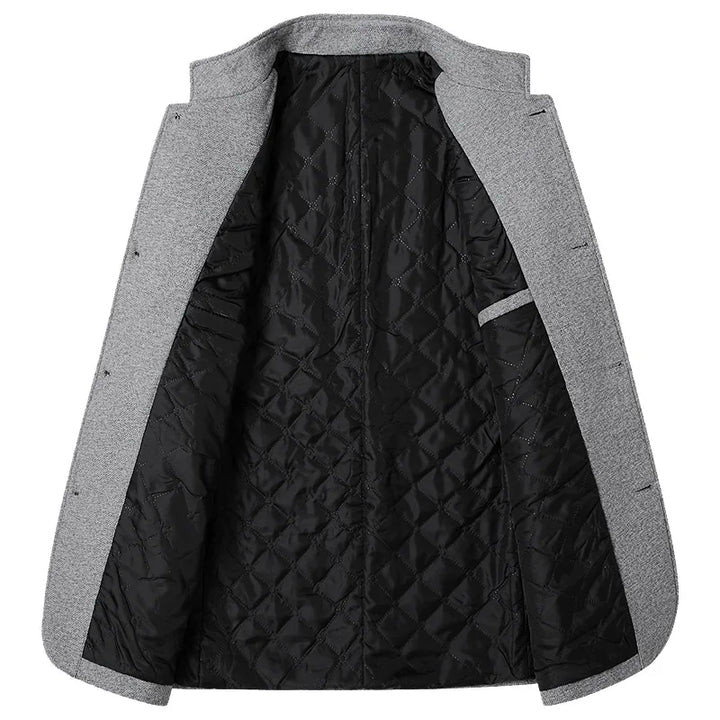 Crafted from finely woven wool, this overcoat achieves the perfect balance of softness and structure. Designed with precision, it features clean lapels, a sharp cut, and a comfortable yet tailored fit.