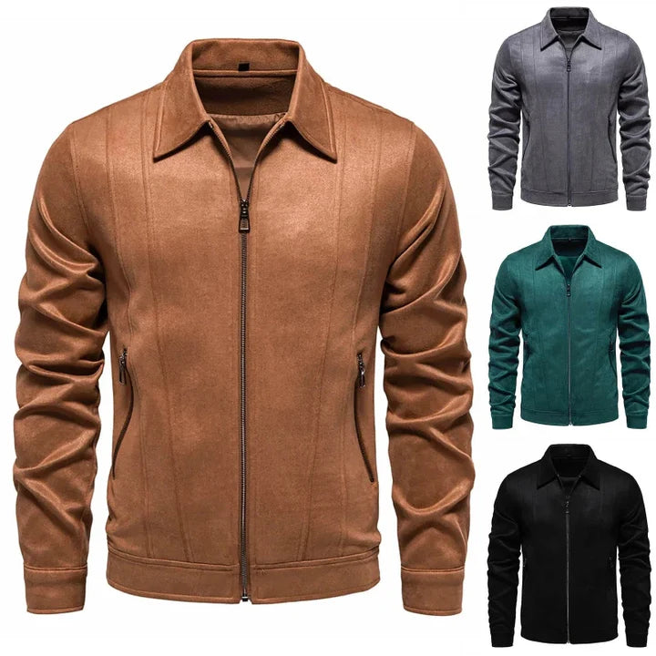Crafted from soft, durable fabric with a suede-like finish, this jacket delivers a clean look with functional zippered pockets and structured tailoring. A versatile design made for modern essentials.