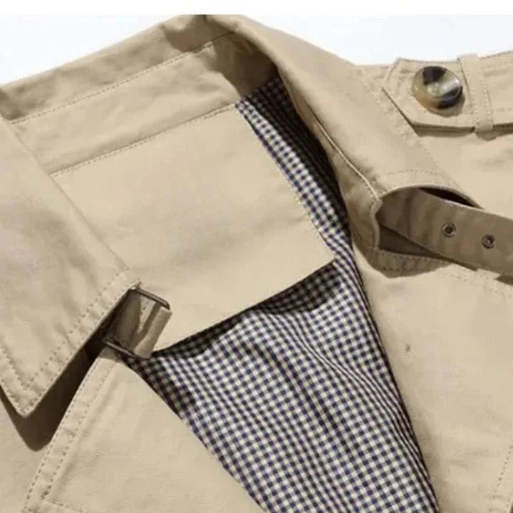 Crafted from premium cotton, our Finachi trench coat features a belt closure, a flannel-lined interior for added warmth, and refined buttons. The structured collar, tailored fit, and wrinkle-resistant finish make it a practical and polished choice.