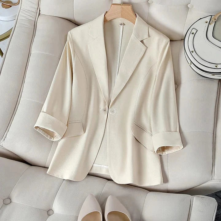 For the woman who owns her calendar. A power jacket with a softer voice, cut in breathable, silky Tencel that moves with you. Understated. Underlined.