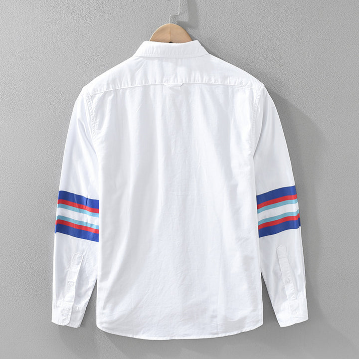 Woven from our featherlight Gossamer Linen, this piece tempers playful color with sharp restraint. The vivid sleeve accents trace movement like a brushstroke—precise, unforced, and unapologetically original.