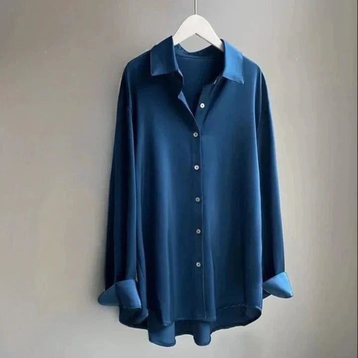 Spun from an airy, silk-infused weave, this blouse skims the skin with an indulgent softness. A fluid silhouette and delicate sheen make it the perfect companion for both structured tailoring and relaxed styling.