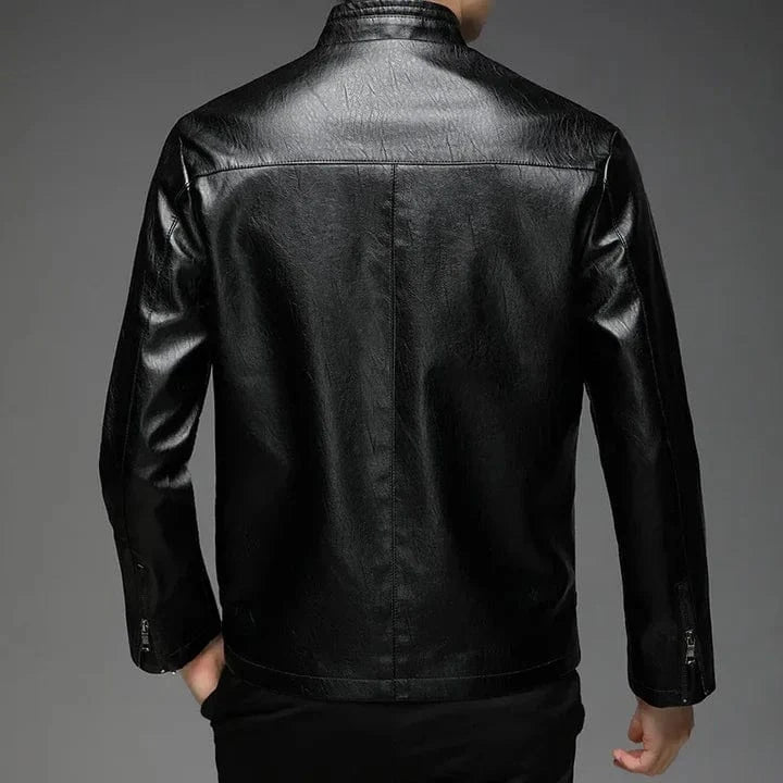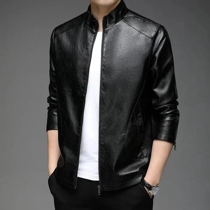 Crafted from premium leather, this jacket features a sharp silhouette with precise paneling for a streamlined fit. A smooth inner lining adds comfort, while its minimalist design ensures effortless versatility.