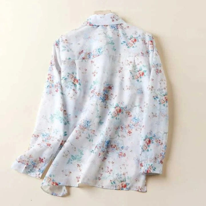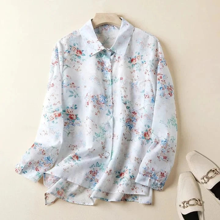 Silk, in bloom. This weightless shirt carries the hush of early mornings in the garden. Soft lines, a flowing silhouette, and florals that feel hand-painted—it's romance wrapped in ease.
