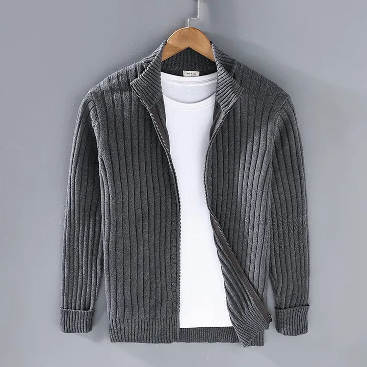 Crafted from heavy cotton, this knitted jacket ensures breathability and a pleasant feel. The open front cascades softly, inviting both comfort and subtle style into your day.