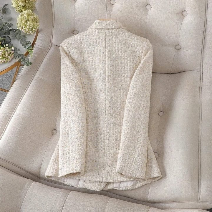Delicately textured yet sharply tailored, this piece offers day-to-night versatility. The cotton-rich tweed adds dimension while the silhouette enhances the waist—sophisticated without stiffness.