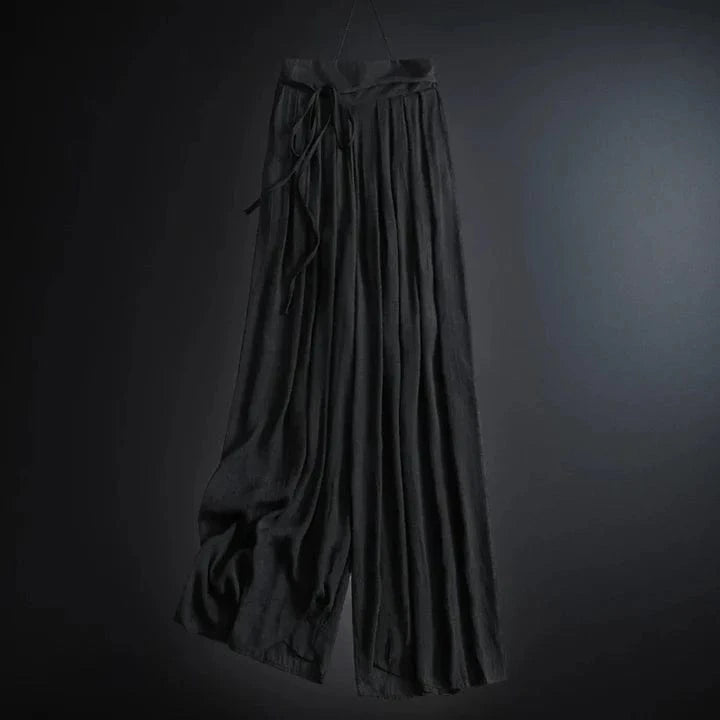 Spun from air-kissed gossamer linen, these wide-leg pants fall like soft whispers of summer dusk. A gentle tie at the waist cinches a silhouette that sways with every breeze. Dreamy, weightless, and imbued with that quiet kind of beauty only linen can carry.