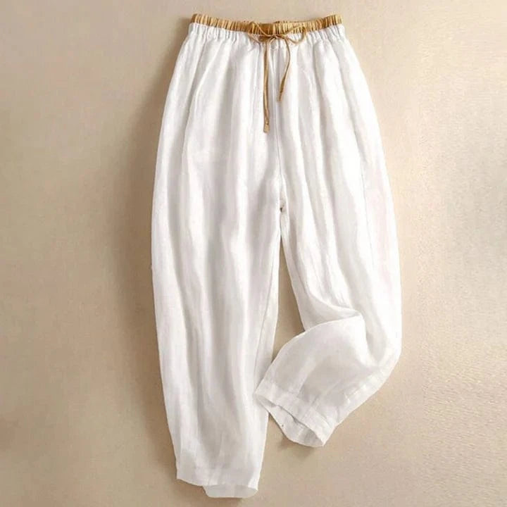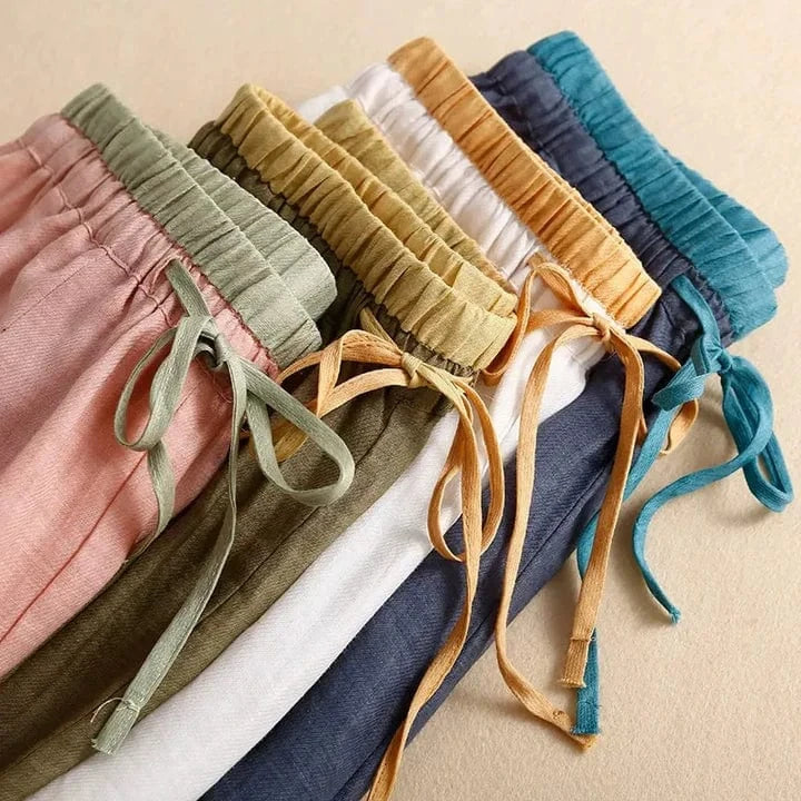 A whisper of summer caught in every thread. These gossamer linen pants are thoughtfully constructed with an easy drape, cinched waist, and a lightness that travels with you—from cobblestone streets to barefoot mornings at home.