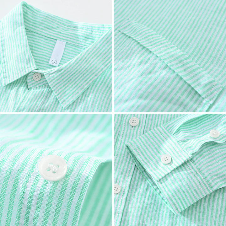 Woven from our ultra-light Gossamer Linen, this shirt blends weekday polish with weekend freedom. The textured stripes add dimension to a silhouette made for movement.