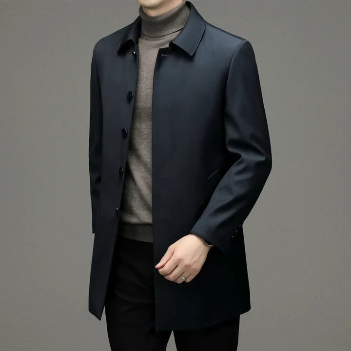 A sartorial masterpiece, the Olivier-Rémi Classic overcoat is a seamless fusion of nanosilk and wool, engineered for exceptional softness and resilience, offering an enduring fit that meets modern elegance.