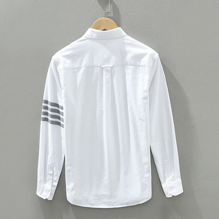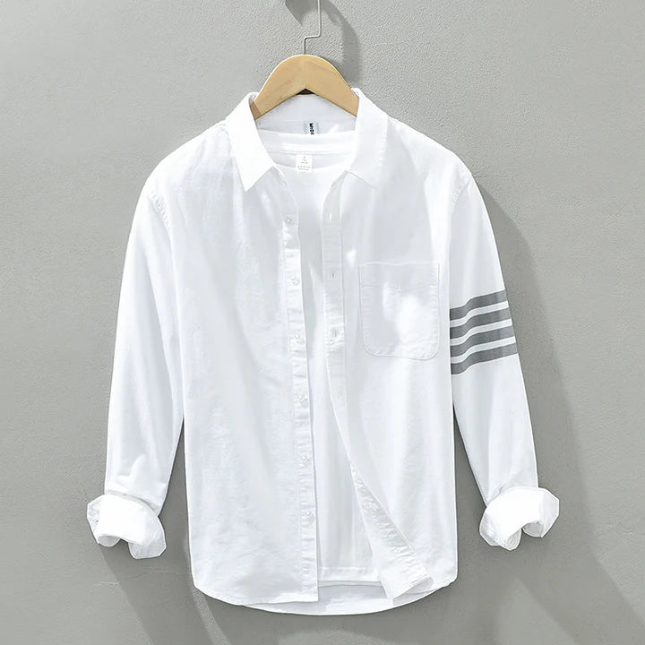 Tailored from our premium Gossamer Linen, this shirt balances soft structure with lightweight function. Tonal striping along the sleeves adds just enough detail to elevate this essential layer.