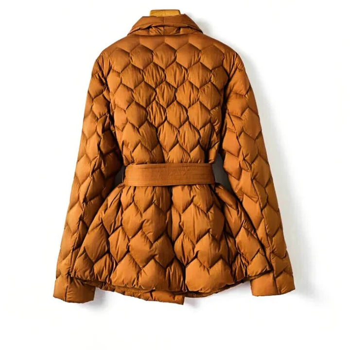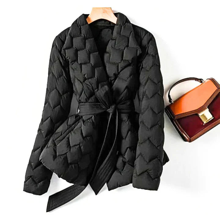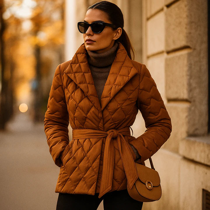 Classic indulgence, laced with statement flair. The exaggerated texture of the padded quilting draws the eye, while the cinched leather-tie waist nods to heritage equestrian silhouettes. Bold yet deeply sophisticated — a modern heirloom for cold city streets.