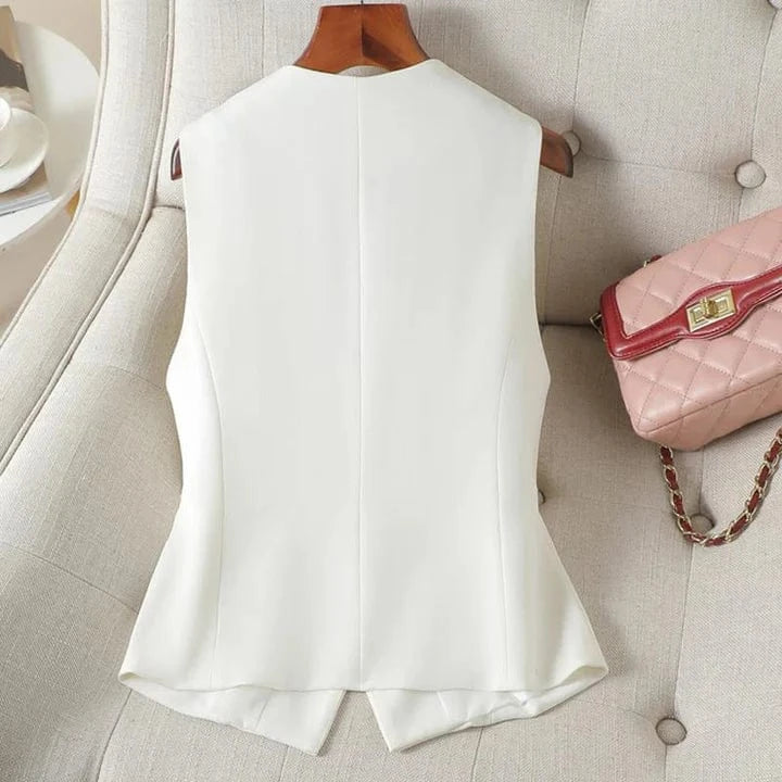 Designed with intention and cut with care, this vest redefines minimalism through a silk lens. The classic five-button closure and clean V-neckline make it a layering essential with stand-alone presence.