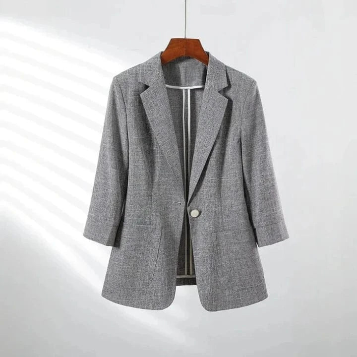 Rendered in Gossamer linen for its breathable texture and soft resilience, this blazer shapes a clean silhouette with cropped sleeves and a single-button front. Light structure meets relaxed tailoring—woven for days that move with ease.
