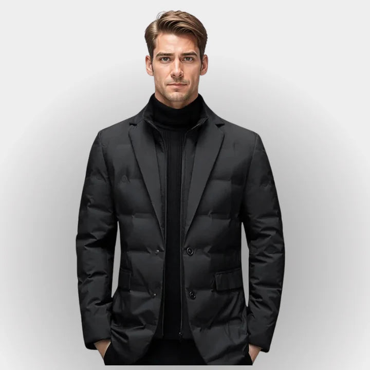 Built for cold weather without adding bulk, this insulated blazer features a durable, weather-resistant shell and a tailored fit. Keeps you warm while looking sharp.