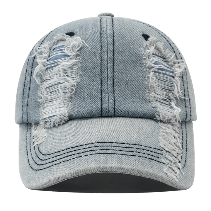 Worn-in yet timeless, this denim cap is crafted to perfection with intentional distressing, offering a weathered charm that speaks to the rebel within. A versatile piece for casual outings or daring ensembles.