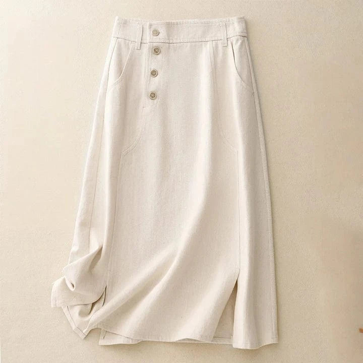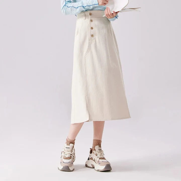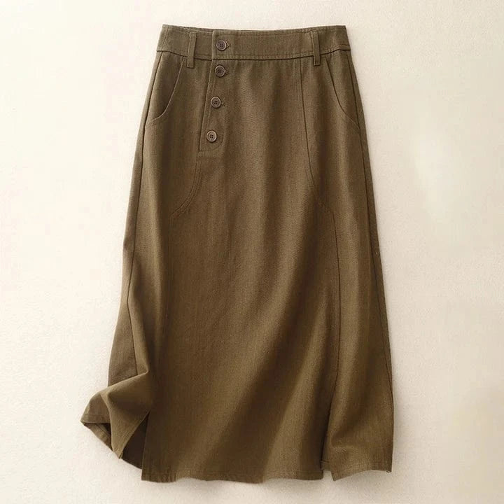 A study in quiet sophistication, this skirt is impeccably tailored in a refined espresso shade. The clean, architectural lines and thoughtful button closure create a poised and contemporary silhouette, a key piece for a curated wardrobe that transitions with exquisite ease.