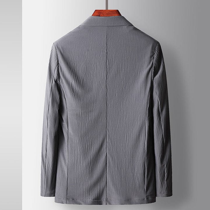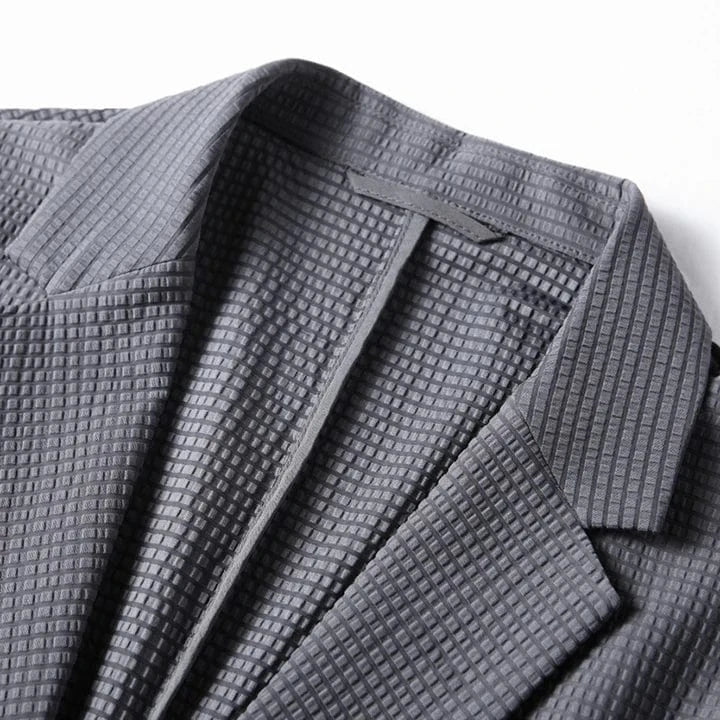 A clean grid texture wraps this cotton blazer in quiet detail. Lightweight on the shoulders and breathable in motion, it slips between work and weekend with nothing out of place.