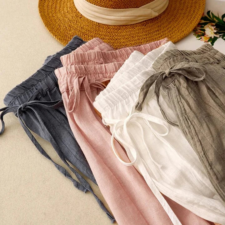 Spun from our most exclusive gossamer linen, these wide-leg pants invite effortless movement and artisanal charm. Gentle pleats and a drawstring waist evoke sun-warmed afternoons and seaside escapes. A softly textured essential for the dreamer’s wardrobe.