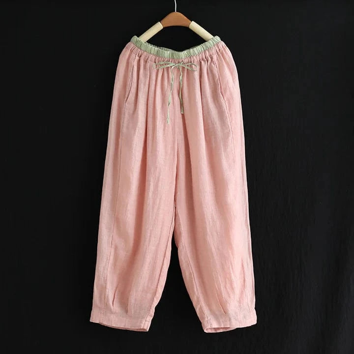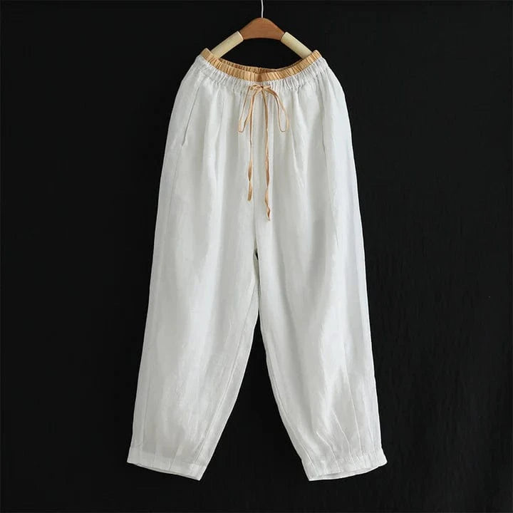 Minimal in cut, rich in texture—these Gossamer Linen pants bring sculptural rhythm to casual form. The elasticated waistband merges function with refinement, while tailored pleats and cuffed hems lend quiet architecture to the silhouette.