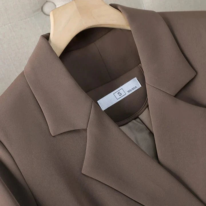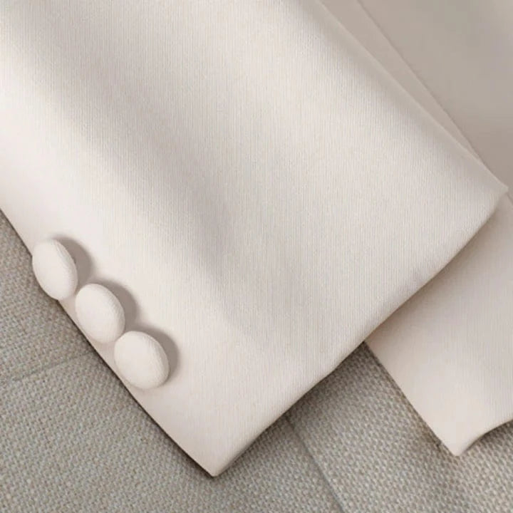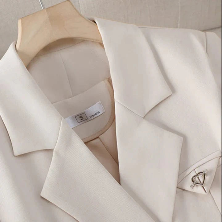 An architectural approach to soft authority, this blazer merges clean lines with grounded precision. The sharp lapel, tonal buttons, and subtle asymmetry lend quiet structure to a silhouette built on balance and control.