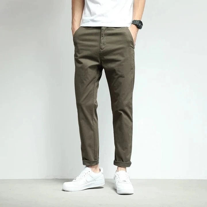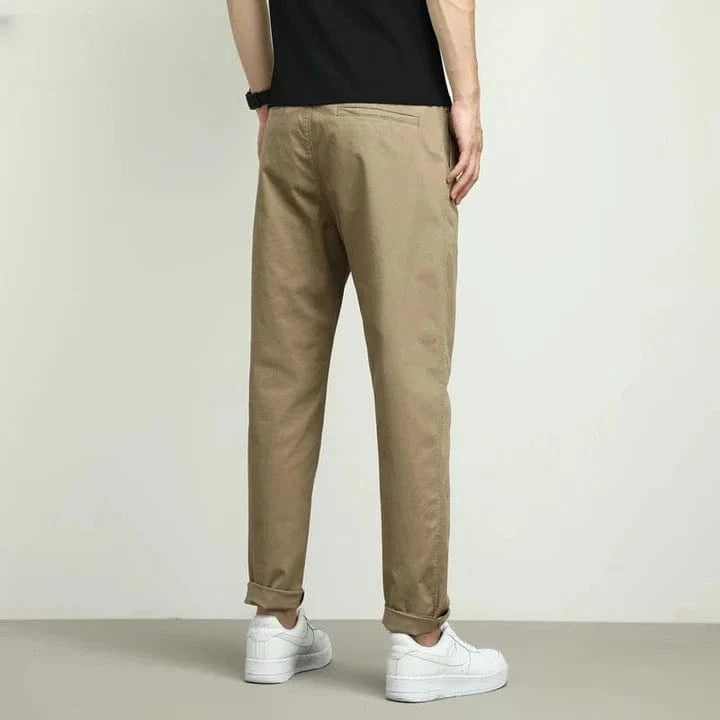 Move seamlessly through your day with the Tech Trousers. Crafted from 100% cotton with 4-way stretch, these slim-fit pants offer durability, comfort, and water resistance. Wrinkle-free and packable, they feature neatly tapered legs, a hidden button closure, and sleek pockets—perfect for travel or work.