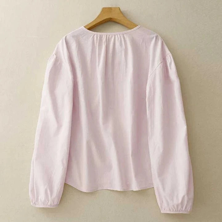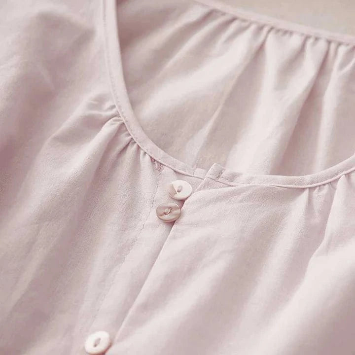 Textural, airy, and elevated—this Gossamer Linen shirt is a study in subtle charm. The playful contrast of handmade knotted buttons gives a crafted finish to its naturally draped silhouette.