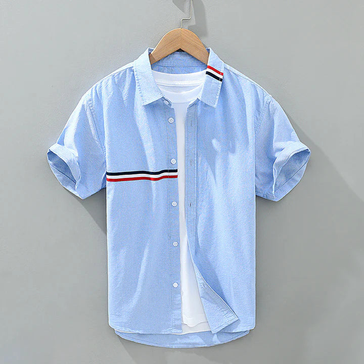 An essential with character. Designed from Gossamer Linen for airiness and ease, the chest stripe slices through the calm canvas — part classic, part rebel.